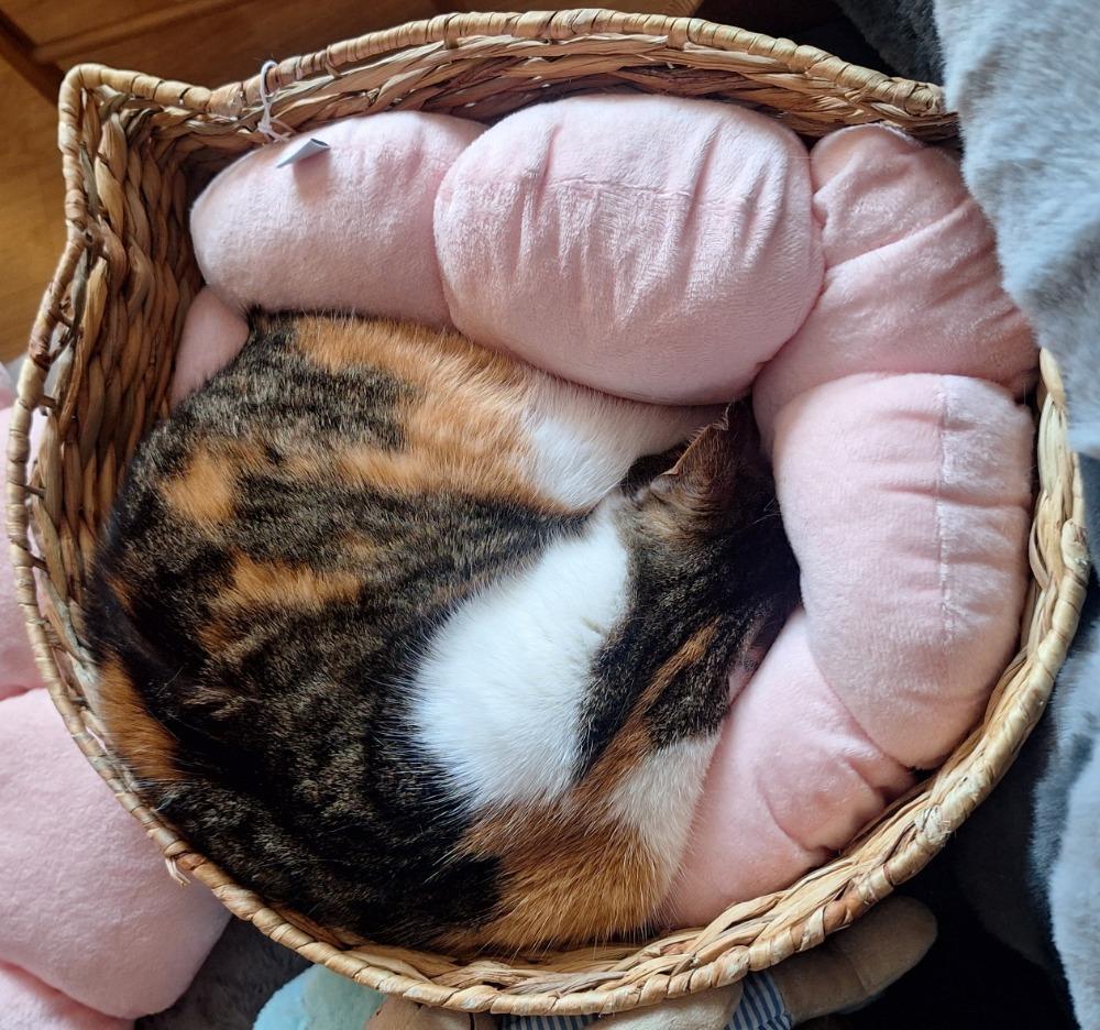 Další prvotřídní reprezentantka kategorie „ukecaná tříbarevka“. Žemla k nám přišla nezvyklá na lidi a docela zamlklá, ale jak se osměluje, docela dost toho začíná vyprávět. Hlavně ráno v kuchyni při přípravě snídaně je bez ní nepředstavitelné. Dá se vzít i do náručí, nicméně raději zatím spí vedle člověka bez přehnaného mazlení. Nehodí se proto do rodiny s dětmi. Další zvířata zvládá bez problémů, je zvyklá i na menšího aktivního psíka.