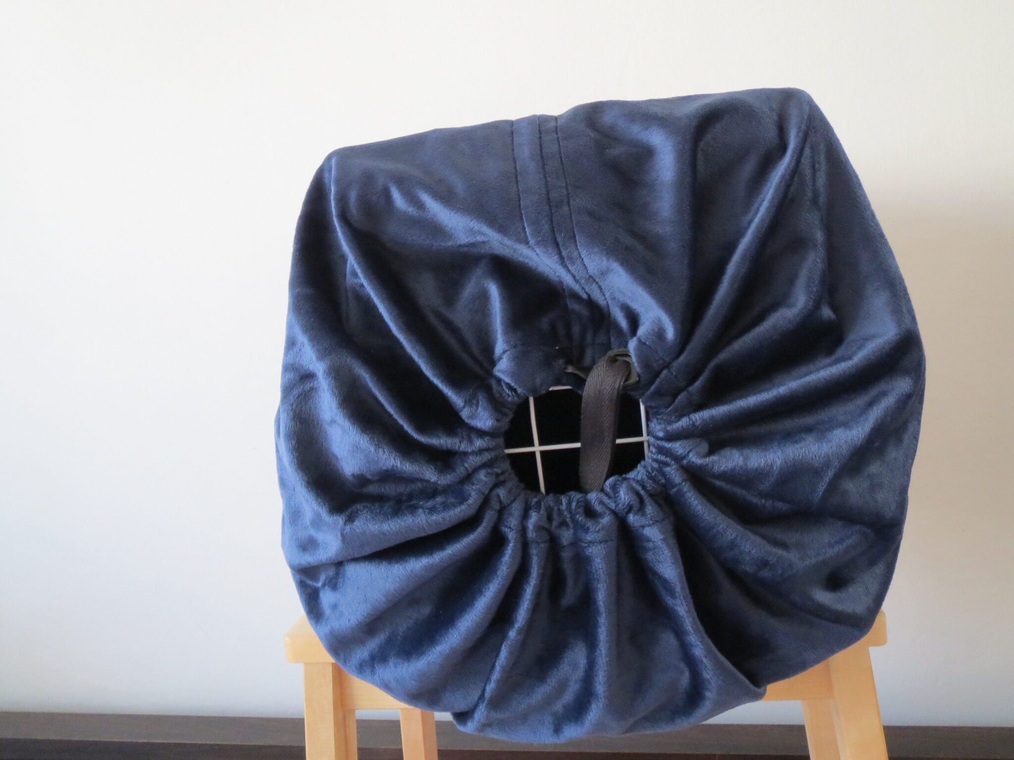 Průměr zadní části cca 36 cm, délka od zadního švu ke stahování 57 cm.