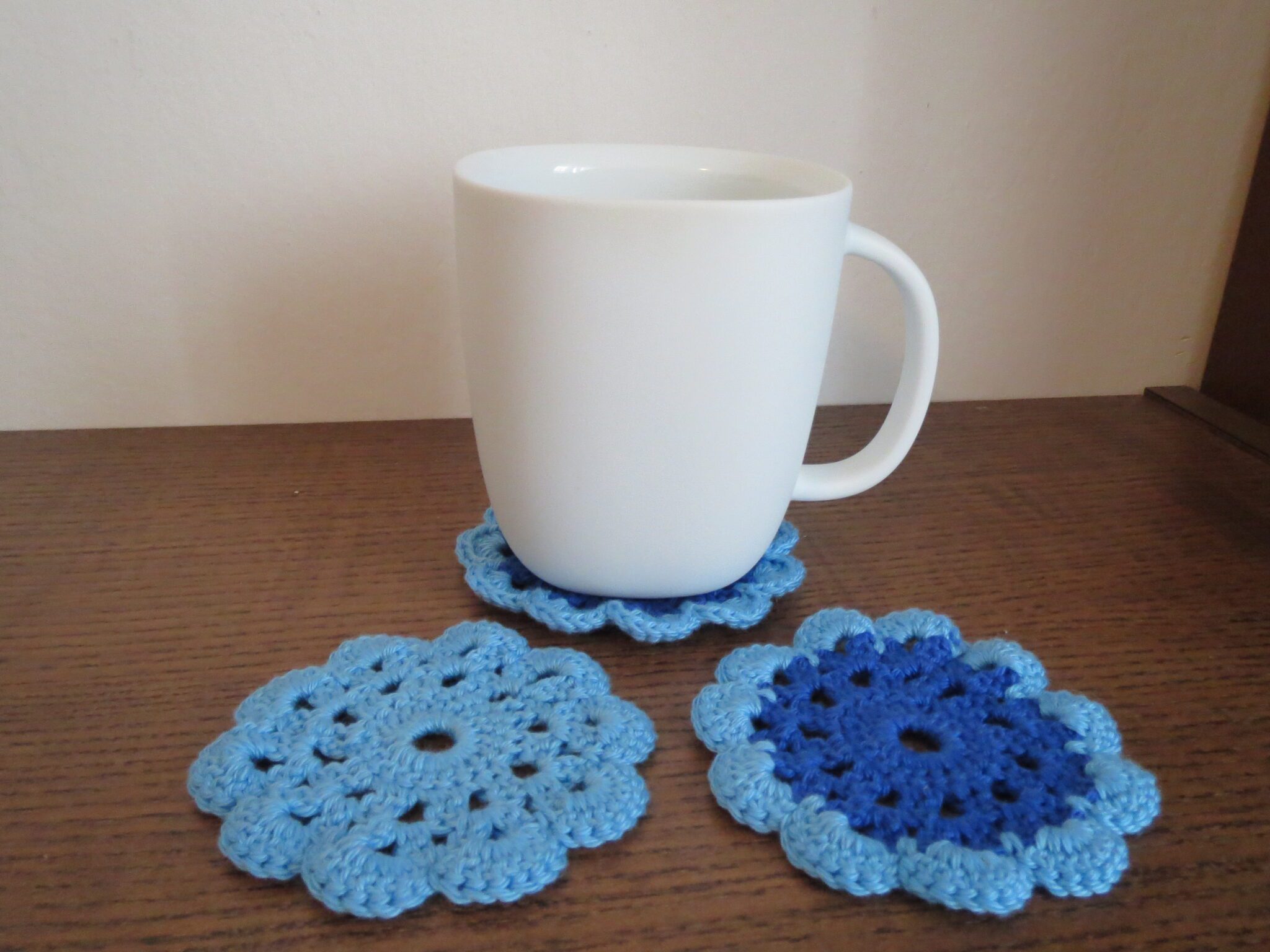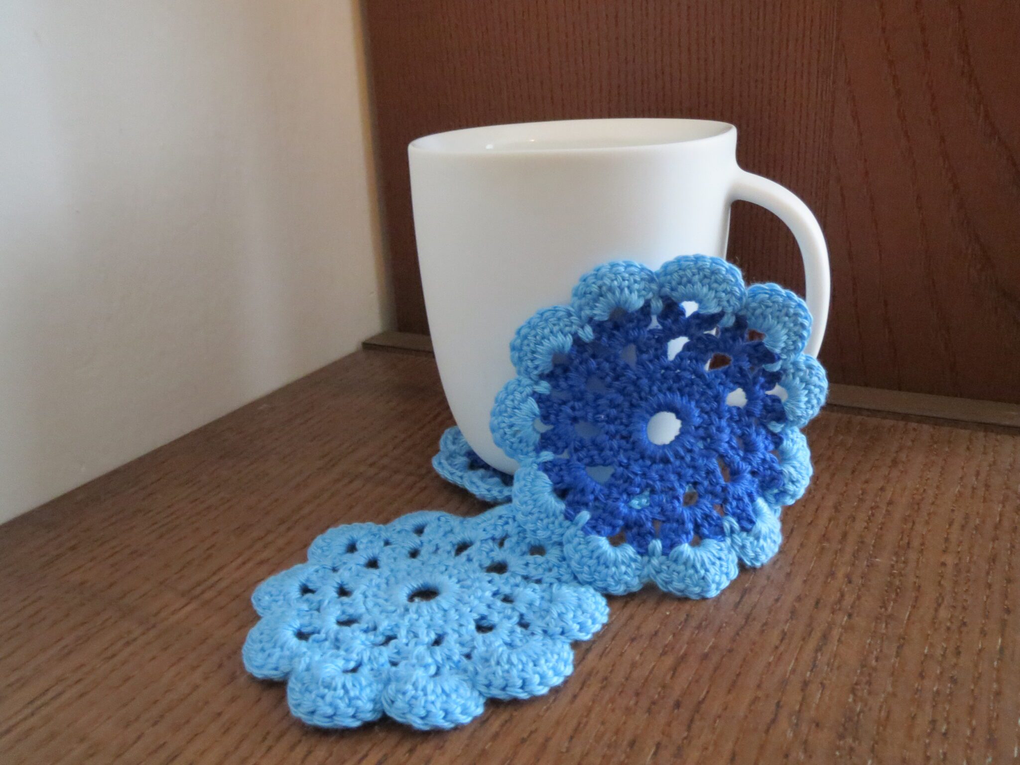Háčkované kolečko pod horké i studené nápoje. Průměr cca 8,5 m.